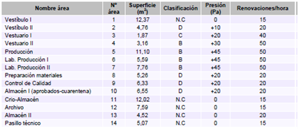 Las instalaciones tienen un área de 94,34 m2, repartidos en las siguientes áreas con distintas clasificaciones que se resumen en la siguiente tabla: